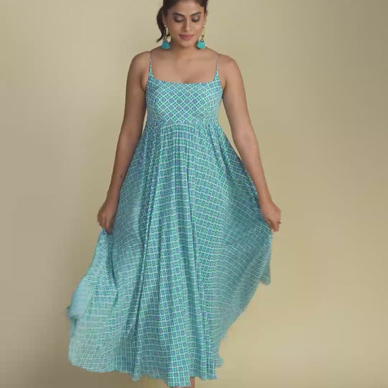 Spaghetti Sleeves Geometric Print Maxi Dress