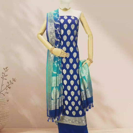 Designed for the modern woman who values both style and comfort this royal blue and green georgette suit set is a perfect blend of tradition and modernity. The flowy georgette kurta and dupatta offer a graceful drape, while the soft crape pants ensure comfort with a refined fit. Ideal for festive celebrations, weddings, and special occasions.