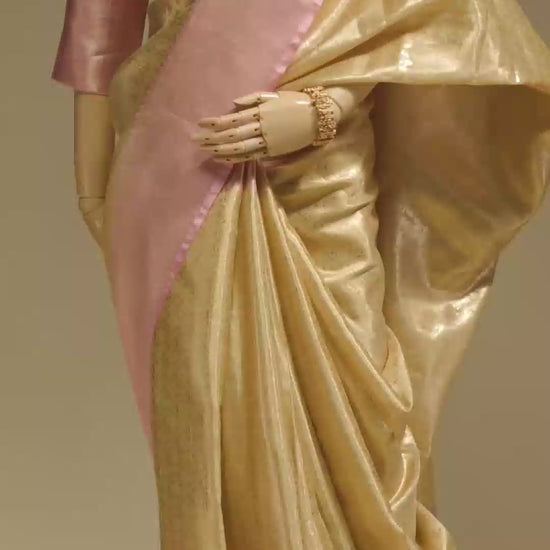 Tissue Silk Saree In Golden And Pink With Paisley Motifs