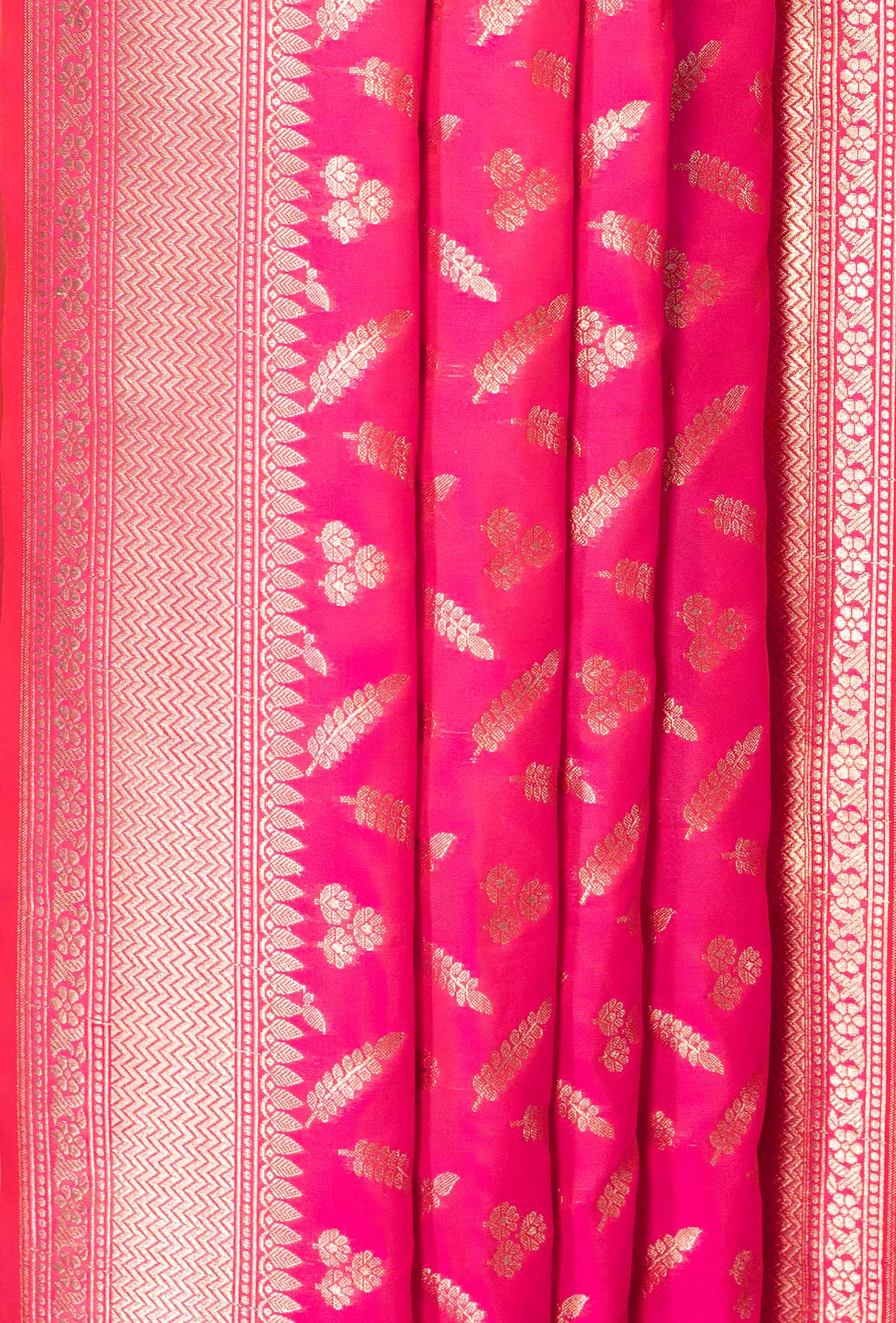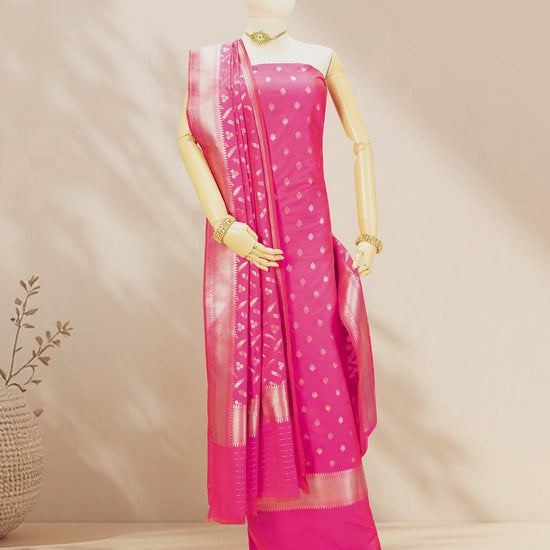Two Tone Neon Pink Banarasi Silk 3-Piece Suit